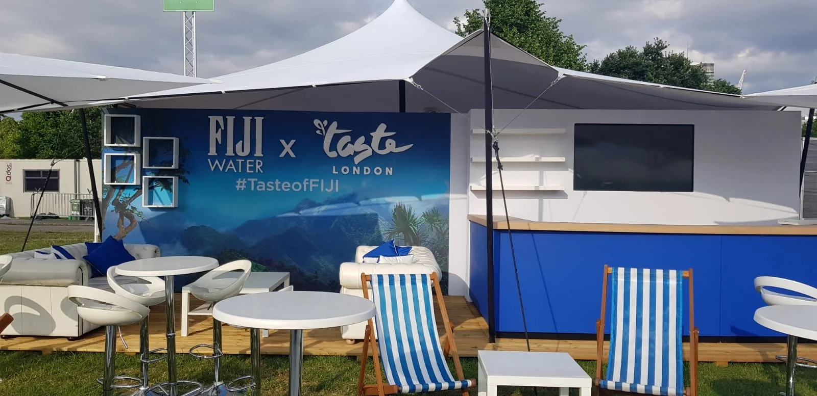 ‘A Fijian Oasis at TASTE Festival in London’ was the brief. As main water sponsor, FIJI wanted a relaxing, lounge environment to export visitors across the shores. My approach was to introduce a bar unit to provide a formal service style to elevate the high-end product & create use the brand colours of white & blue to create a premium chill out space.