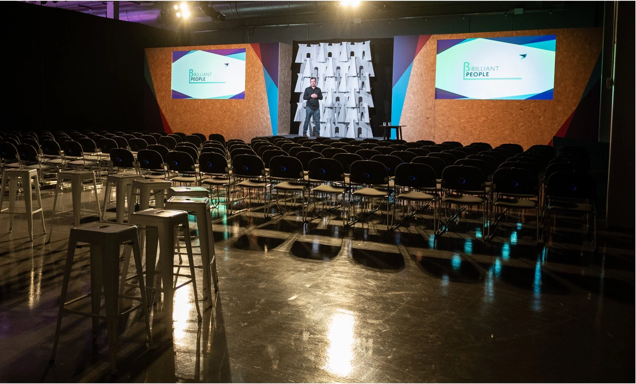 Skipton Building Society’s ‘One Team Together’ event was awarded ‘Best Sustainable Initiative’ by C&IT Awards in 2023 . This company conference & exhibition included experiential breakout zones, which focused on both environmental & social sustainability. We worked closely with our print supplier to source new, sustainable materials which could be used for freestanding structural elements that could be repositioned throughout the event & then reused in Skipton’s head office or recycled post-event.